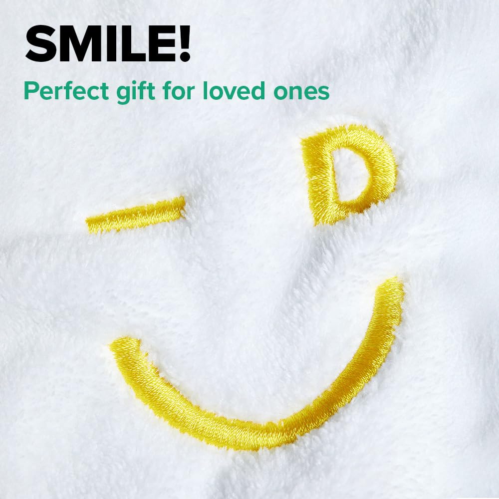 Meet the towel featuring I Dew Care’s signature smiley face print.